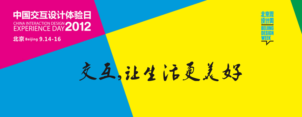 2012年9月14号(星期五),众望所盼的2012中国交互设计体验日在北京新世纪日航饭店三层隆重开 幕。IxDC再次携手北京国际设计周为大家提供一 个交流、学习与展示的平台。本届体验日有大会演讲、实践工作坊、教育系列会议,还开展交互科技展、设计之旅、设计师之夜、中外志愿者交流会等形式多样的活 动,为大家提供一场全方位的交互设计体验盛宴。本次体验日活动聚集国内外交互设计先驱者;展示中国交互设计优秀成果;为交互设计教育与企业搭建一个交流的 平台; 促进中国交互设计产业与国际设计前沿的同步发展。共同引领中国交互设计行业发展,为改善生活、提高质量与体验、创造美好生活而努力。more
