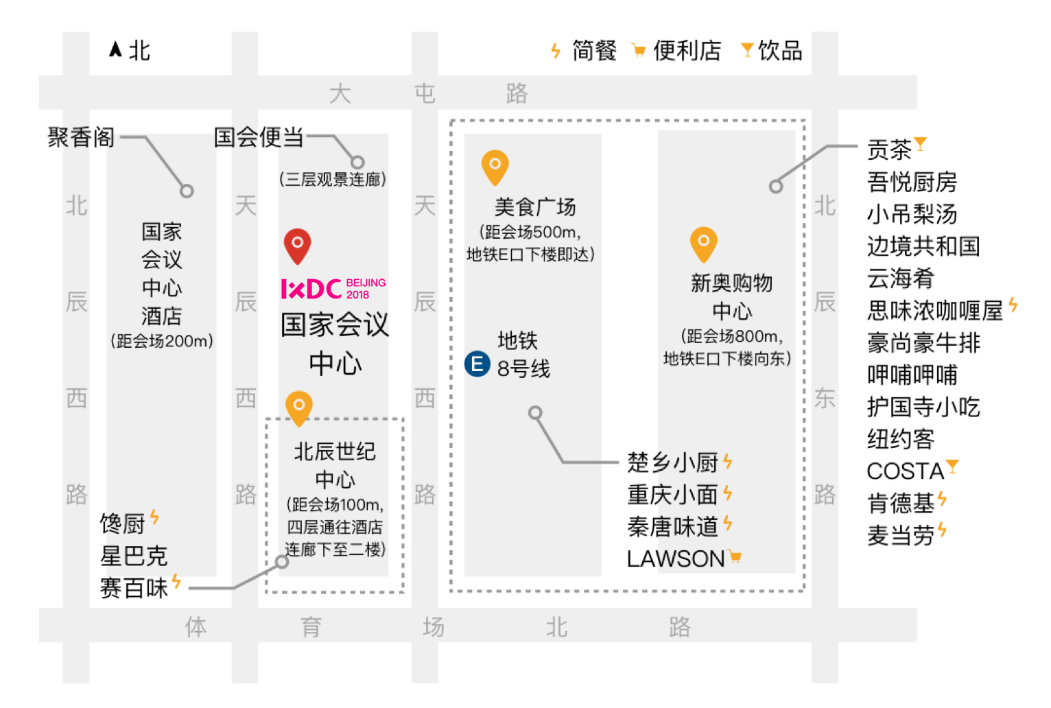 8号线,奥林匹克公园站下车,从E出口出来,步行450米,约6分钟即到会场。