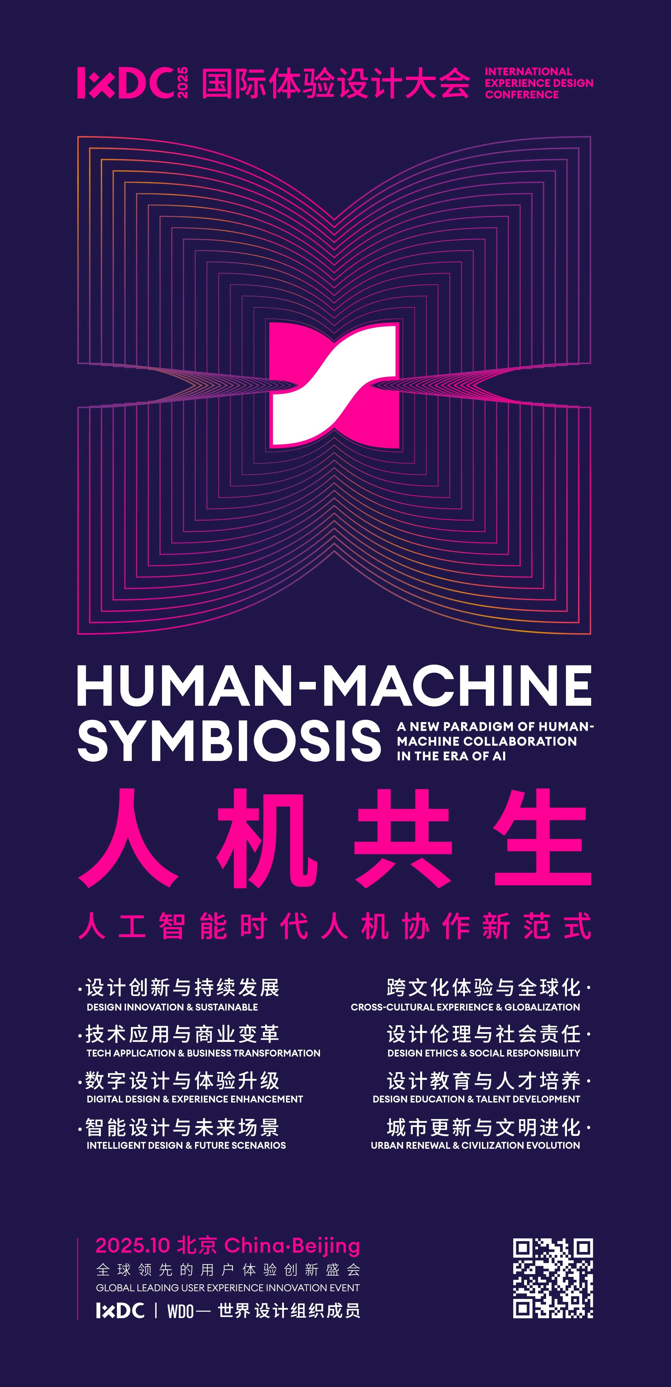 为深度剖析人机共生的机遇与挑战,探索人工智能与人类社会融合的前行道路,IXDC2025国际体验设计大会重磅来袭!大会以“人机共生:人工智能时代人机协作新范式”为主题,汇聚全球顶尖思想与实践者,共同探索人机协作的未来图景。