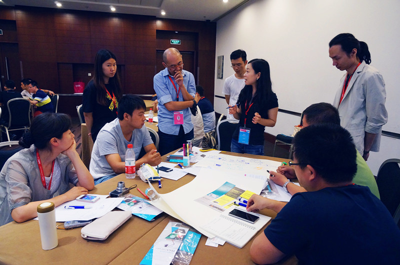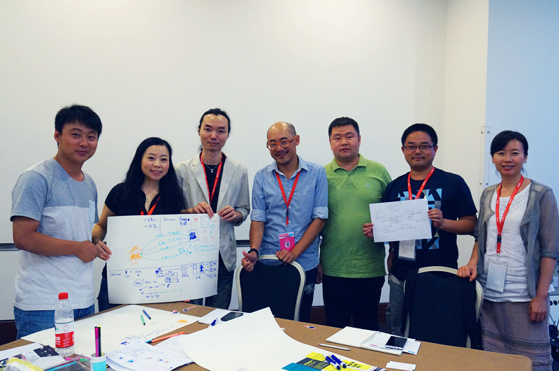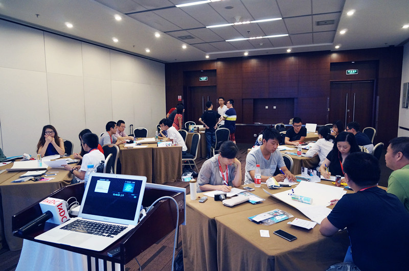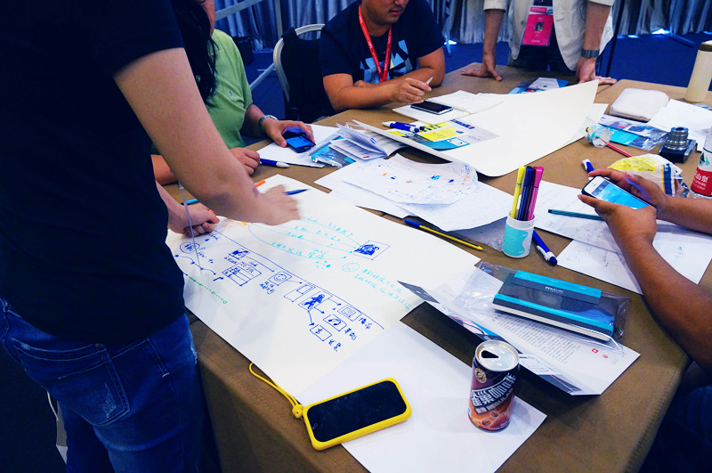 在互动环节中,主讲人邀请参会者画一个关于本次IxDC大会的体验的customer journey map,并小组成员分享这几天的经历。贴心的是,讨论过程中,主讲人为大家播放起了轻松愉快的音乐,让大家不知不觉放松了心情。随后,各组就本次大会的不顺利的体验展开讨论,并据此思考解决方法。