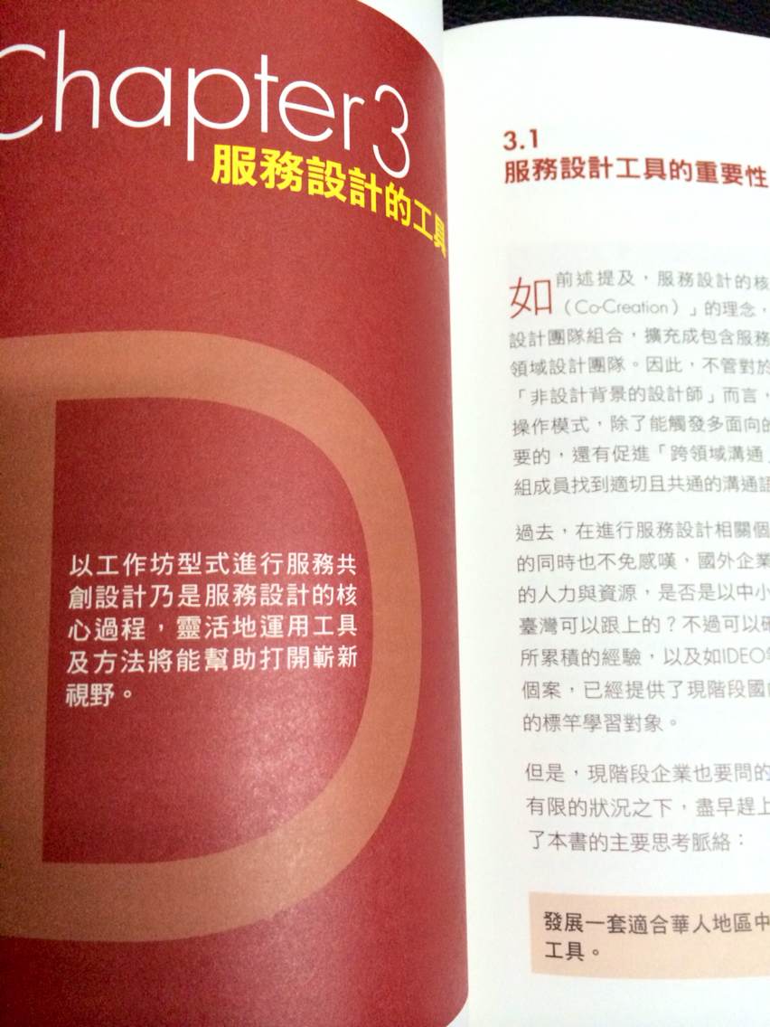 本书在过程中将会分享服务设计各个阶段常用的工具,并说明使用时机与相关技巧。企业可以依照需求的不同弹性搭配使用,成为专属独一无二的服务创意加值工具书!