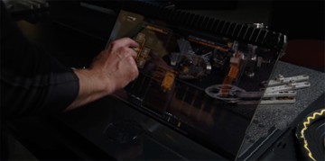 《红色星球》中,用来探测的仪器是一个触控屏幕,从卷轴中抽出来,变换自如。《复仇者联盟》铁皮的新鲜玩意,也是一个可折叠的触控计算机终端。