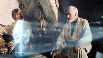 全息投影是利用干涉和衍射原理记录并再现物体真实三维图像的技术。目前全息投影技术已经诞生,自己都可以制作iPhone屌丝版(详情请百度)。早期最著名的全息投影是《星球大战》中的Leia公主,垃圾桶机器人直接将她求救信息全息投影了出来。还有《阿凡达》中哈利路亚山。