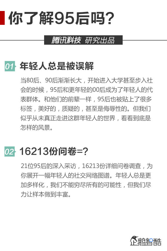 你了解95后吗?当80后、90后渐渐长大,开始进入大学甚至步入社会的时候,95后和更年轻的00后成为了年轻人的代表群体,和他们的前辈一样,95后也被贴上了很多标签:美好的、质疑的,甚至是侮辱性的,但我们似乎从未真正走进这群年轻人的世界 – 透视95后,新生代社交行为报告 – 那些被误解的年轻人。