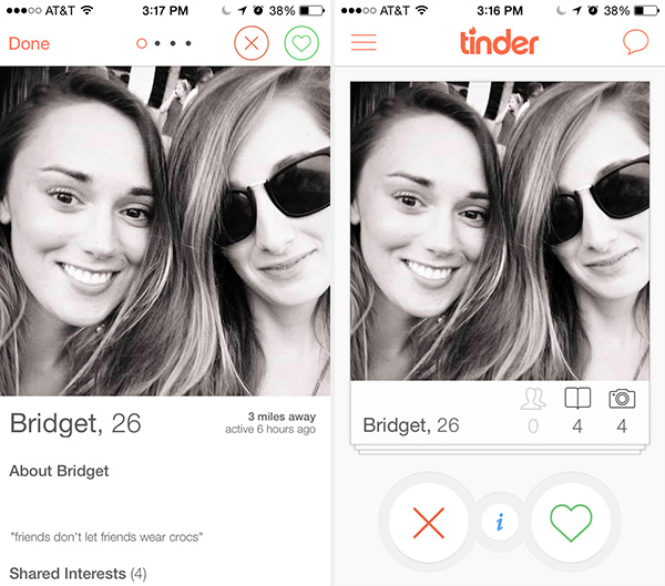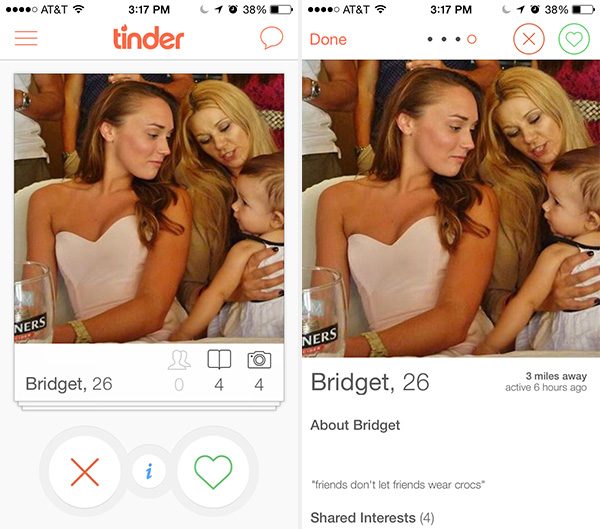 实现概览和细节界面的无缝过渡。Tinder和9Gag均实现了这方面的无缝响应。在Tinder中,其UI设计模式可让用户在两种用户资料界面无缝过渡,用户只需单击各视图的主照片即可。不仅如此,如果用户在用户资料的详细视图界面下滑动各个照片,然后单击某个照片返回基本视图,其还会保留显示你所单击选中的照片。这样即可实现极为流畅、直观的用户体验和流程。