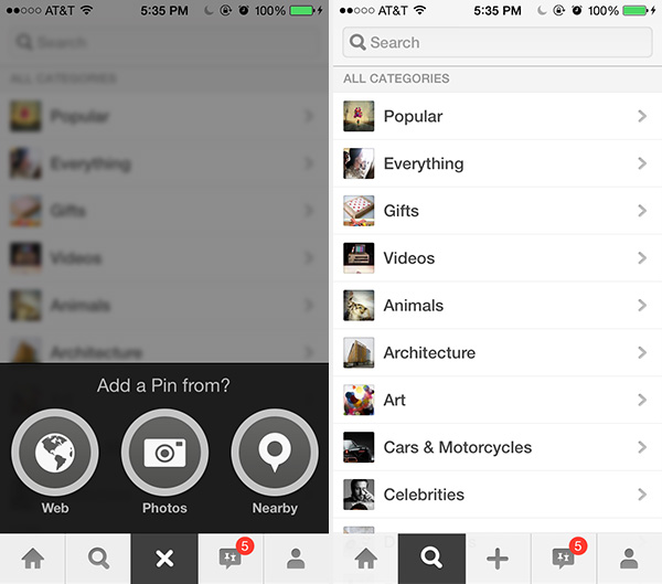 Pinterest和Spotify会把“+”变成“x”按钮,这样用户就能知道自己可以取消添加别针或关注相簿。这一UI设计模式可大量节约空间,让撤销操作快速简洁,整体上堪称值得玩味的解决方案。