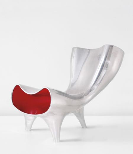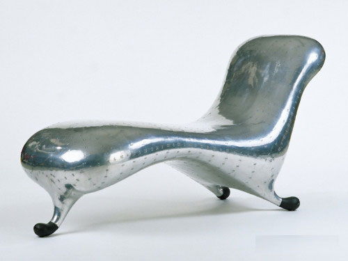 1984年,Marc Newson在毕业前的一次展览,一把18世纪马车座椅以“创造一个流动的金属形式”为概念,被改造成了令人惊奇的Lockheed躺椅。凭着手工打造的银色金属漆与弧形线条,整个躺椅呈现出具有迷幻色彩的流动感,Marc Newson由此一举成名。