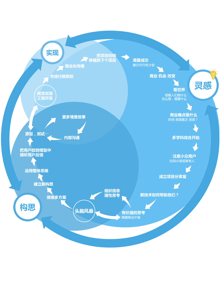 下面给出的图表是根据原文翻译出来绘制的一个设计思考流程图: