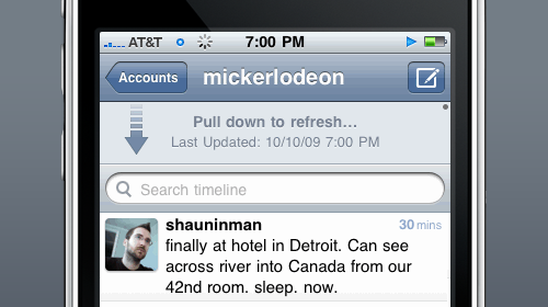 在习惯了使用Facebook、Twitter或Google等社交网站后,我们都会很自然的使用下拉手势进行内容更新。第一个使用这个设计模式的公司是Apple,在此之后这一设计就广为流行开来了。