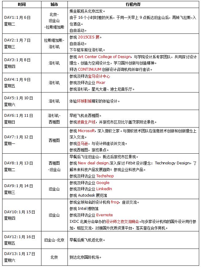 美国体验创新之旅第二期,最新日程更新,参见下表: