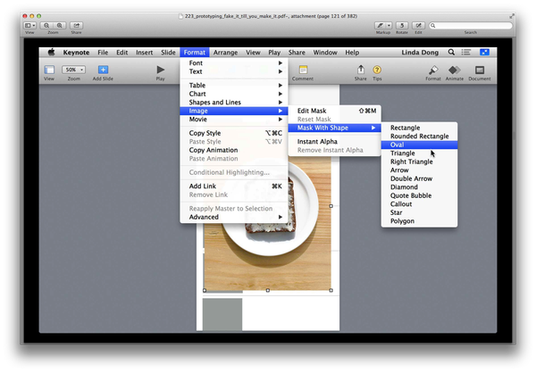 3. 导入图片,Keynote有很多种方式可以调整素材样式,包框,阴影,透明图,实时遮罩等等。是的,你可以用PS慢慢玩,也可以用keynote一键完成。
