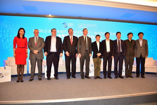 世界互联网大会中外互联网领袖高峰对话主持人与全体嘉宾合影