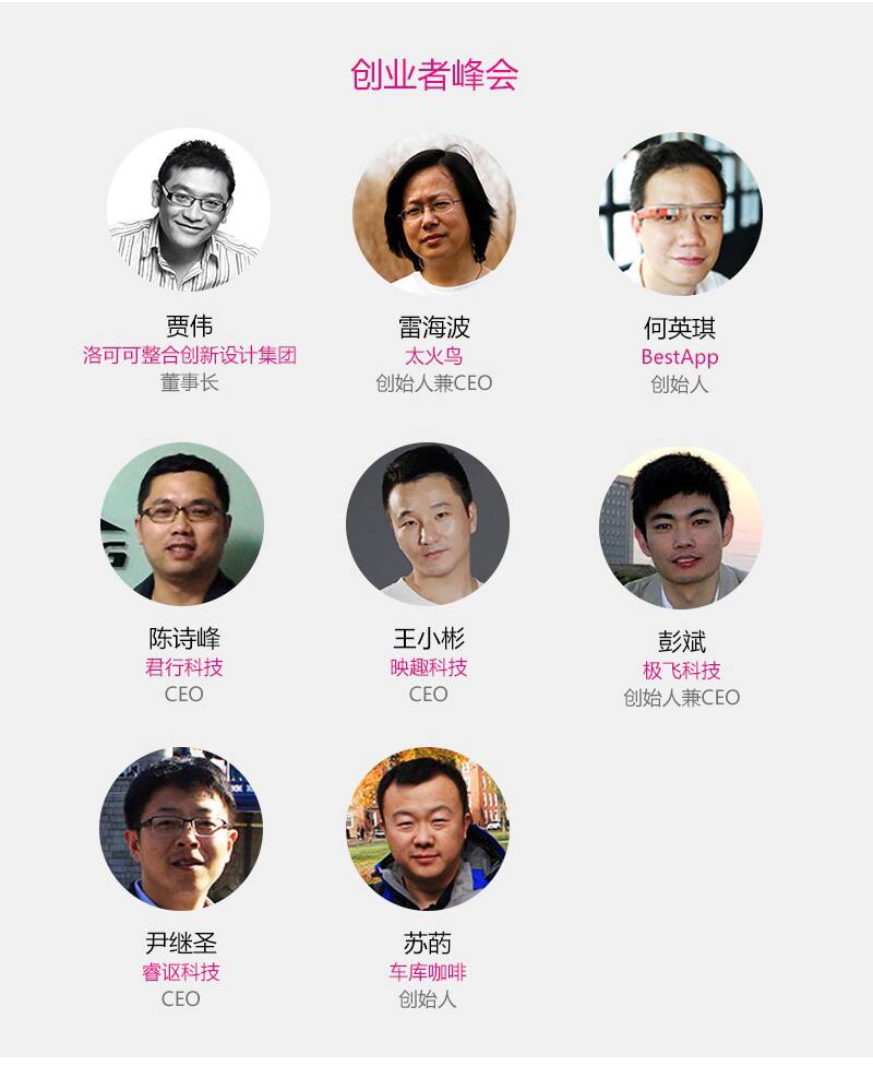 2014年,移动互联网的飞速发展,智能硬件产品的层出不穷,硅谷创业的热潮也越来越影响中国。设计创业已经是越来越强烈的热潮。2014中国产品经理大会上,我们将举办首届“创业者峰会” ,邀请互联网、移动互联网、智能可穿戴、智能硬件、实体品牌产业等的创始人、CEO、管理者来做演讲,从产品的角度,围绕“产品创新战略”,分享经验与案例。为更多的产品经理、设计师、创业者们传道授业解惑.