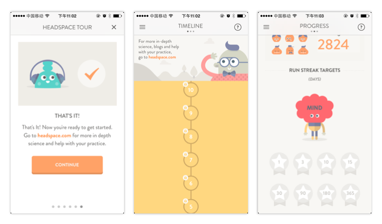 而2015年的流行色比较适合营造温馨、舒适的感觉,比如这一款灵修功能的APP(是帮助大家开发大脑的啦~呵呵),偏灰白的色系用的恰到好处: