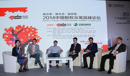 圆桌对话《构建众筹生态圈的实践与挑战》现场:长城会总编辑王晶VChello微投网创始人/CEO、广东天使会执行会长俞文辉,云筹联合创始人于小黎,人人投CEO郑林,PPMoneyCEO 胡新,中大创投CEO/海鳖众筹创始人郑贵辉。论坛围绕“众筹的定义”、“众筹平台的创新点”、“众筹平台的核心竞争力”以及“如何构建生态圈”等话题展开了热烈的探讨。