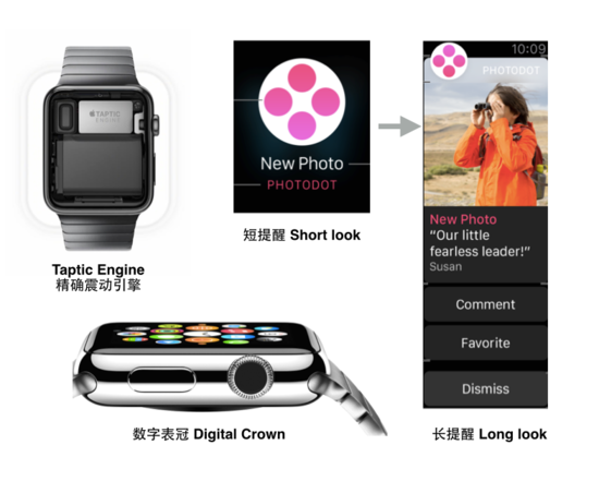 苹果强调Apple Watch是有史以来最为“个人”的设备,让用户可以最简单的方式获取最个人的数据。你只需要“瞥一眼” 手腕就可以掌控所有信息,免去了频繁掏手机的麻烦。苹果强调了三点交互原则:
