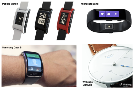 或许苹果和谷歌的这些努力都不入您法眼。那么,就没有别的选择了吗?当然不是!如果你喜欢超长待机,简单可靠,可以选择Pebble Watch。其电子墨水像素风简洁可爱,同时兼容安卓和iOS短信邮件提醒,待机可长达一周,可谓宅男卖萌利器;如果你是运动和数据控,则可以试试微软最新的运动手环。虽丑、但全能。自带n个传感器、又具备简单的手机信息推送功能,给你全方位掌控的快感;如果你认为智能手表一定要独立于手机存在,则可以去试用一下三星的Gear S,超大曲面屏幕,自带上网功能,可随时随地接打电话,逼格爆棚;如果你思来想去,还是喜欢传统手表的造型,则可以关注一下Withings的Activity,或许能满足保守闷骚的您的“颜控”欲… …