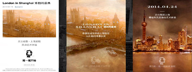 前面几个例子都是“专业人才”,在技术的运用上各精一道,或是触屏,或是多媒体,或是重力感应。当然还有集各项技术于一身的“全才”,这里最有名的要数巴宝莉“从伦敦到上海”的旅程。