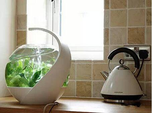 完全不用换水的鱼缸,内部的生态系统能够自动造氧以及消耗废物。