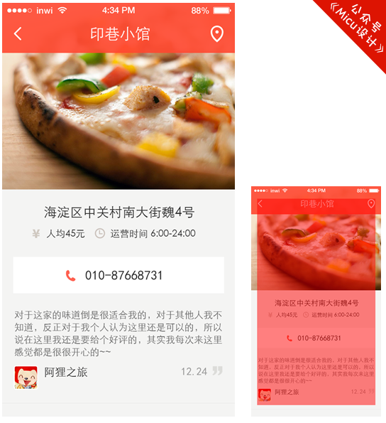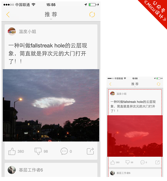 在APP中采用将图片局部突出出来,能拉开信息的层次,将需要突出的图片信息第一时间展示给用户。一方面可以方便和引导用户点击,另一方面在上下滚动的长副瀑布流里,适当地打破平衡,可以丰富页面的节奏感。