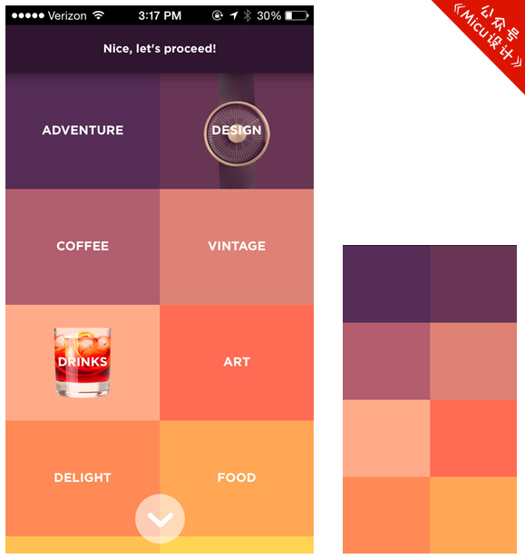 在网页设计中有时候会见到这种方式,其实在手机、平板等UI设计中我们完全可以套用。