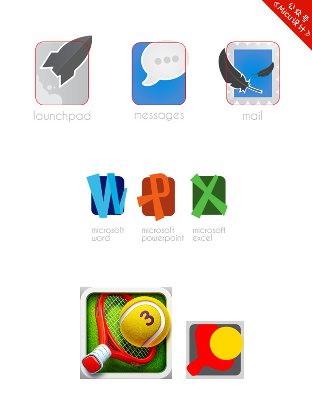 在ICON的设计中我们也常用到破图的方法。在统一的圆角矩形中,将表达寓意的图形局部超出,使图标更为有空间感和灵活性。