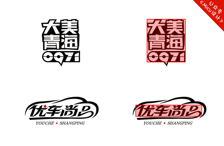 大美青海字体设计我把数字9破出了方块。而在优车尚品字体的设计中,我通过品字的破图找到了车的联想,让整个字体设计的更为贴切灵动。