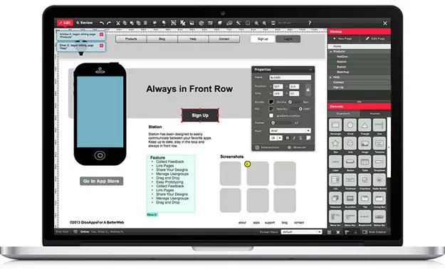 HotGloo是另外一个值得推荐的原型/线框图工具,你可以通过客户端向你的客户和同事共享你的设计稿的预览图,这也使得交流和反馈更加灵活便捷,无需代码。HotGloo其中内置了50多款不同的UI组件和预制的UI库。