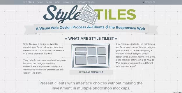 Style Tiles 是一个由字体、色彩和界面元素组成的网络视觉品牌,它可以帮设计师和利益相关者生成他们所需要的视觉语言,并最终交付给客户。