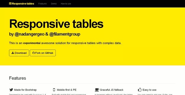 RWD Table Patterns是一套拥有复杂的数据响应式表格解决方案,它是基于Filament Group 的分支项目,基于移动端优先的设计思维来搭建,并在原有项目基础上增加了许多新的特性。即使在不支持JS的浏览器中,它也能使用。在正常情况下,你只需要增加一个JS文件,一个CSS文件以及一些基础的设置之后就可以正常使用。