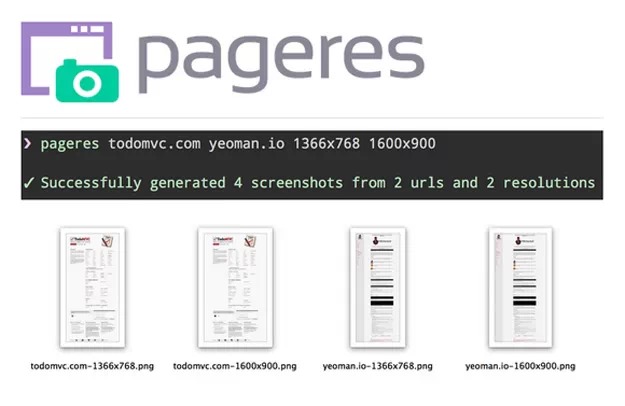 Pageres 是一款命令行工具,用于生成网站不同分辨率截图。Pageres专注于尺寸控制,所以稍加调整代码就可以生成响应式网站的截图。这款命令行工具可以一次设定多个参数,一次到位生成结果。