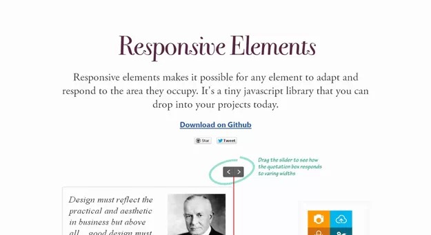 Responsive Elements 能让任何网页元素都随着屏幕尺寸响应式变化,它本质上是一个JS库,它能监测到屏幕的宽度,并让网页元素随之进行调整适配。