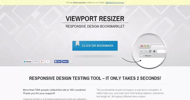 Viewport Resizer 是一个基于浏览器的工具,能帮你测试任何网站的响应问题。你只需要将其保存书签,然后去需要测试的网站,点击书签就可以开始测试了。