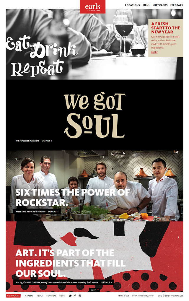 在网页字体的应用中,形形色色的字体样式会让设计师不知如何是好,设计师也许会因此挑花了眼,也许会始终在常用的几种字体中互相转换。而关于字体的选择,设计师应该根据图片中的某些元素作为灵感,以此在网页中自然地形成隐形线索。