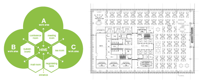 NHN 新企业办公大楼的设计通过其室内布局—一个无柱空间来支持员工的创造力和革新力以强调机构的以人为本。通过让人们之间更多地互相看见,建筑使员工的沟通,富有创造力的头脑风暴,和社交活动更为便捷。