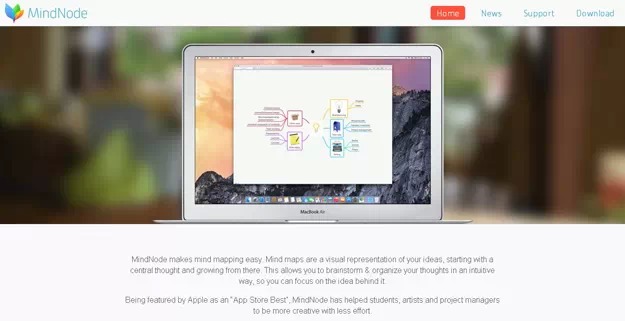 Mindnode 是一款漂亮的Mac平台独占的应用,界面优雅,简单易用。值得一提的是,Mindnode 可以同步到iCloud或者Dropbox上,也可以到出为其他的格式,比如文本和图片。