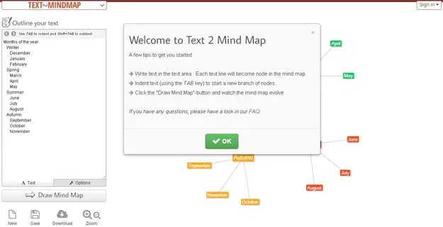 Text2MindMaps 是一款颇为实用的脑图工具,最大的特色是轻量级,在线,并且简单易用。你只需要在文本区域输入文本,使用Tab按键缩进文本,点击拖拽来制作脑图。