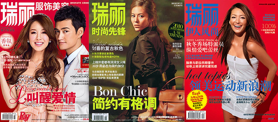 在使用范围上,只要是以女性为主的相关设计,都会大量的使用到女性化的字体。比如下图的女性杂志瑞丽的logo,使用的就是很典型的女性化字体。