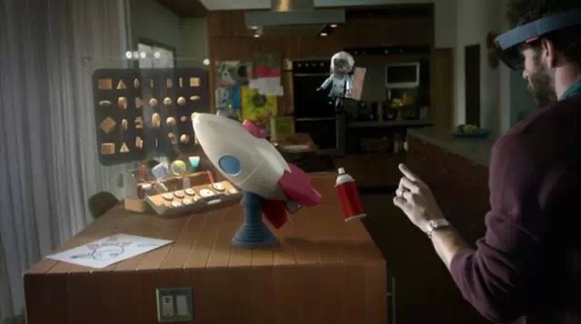 演示中,一个《我的世界》游戏场景叠加到客厅。微软员工让记者选择虚拟锤子(游戏中的工具),然后“砸碎”客厅里的咖啡桌。换句话说,这名员工希望记者用数字物体与现实物体互动。实际操作效果的确让人震惊:咖啡桌粉碎成数字碎片,然后它就消失了。如同魔术一般,HoloLens把咖啡桌从现实环境中“彻底消除”。