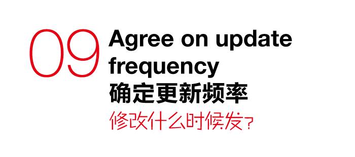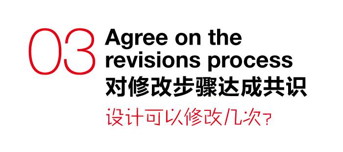 关于这一点,相信每一个设计师都会同意我,客户各种多变的回复频率难免成为心理负担。有些客户喜欢步步参与,紧跟项目的每一进程,而另一些则只在项目的开始和结尾参与。修改与更新大幅度消耗设计师的时间,所以双方在项目开始前约定这个频率不失为明智之举。根据设计师的不同资历和经验,这个频率自会有变动。一旦确定,请尽力遵守,切勿每日“随访”。