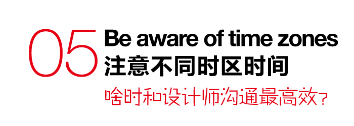 这点也是大白话了,但的确不是每个人有关注不同时区时间的习惯。感谢高科技时代,让身处世界各地的我们可以零距离合作,客户或者设计师只是一封电邮或一个电话之遥,但切忌在不合适的时间与对方沟通工作。