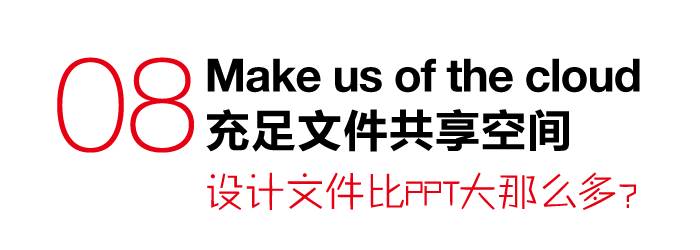 设计文件通常都不小,尤其当你需要放大仔细检查细节的时候,要确保图片质量足够清晰。以确保正确发送或接受大容量文件,预先确定这些文件如何共享能令你事半功倍。云储存帐号是共享大文件的方法之一。随着电邮和多媒体信息日新月异的发展,这已不成问题了,然而,确定一个文件存放点可以有效管理该项目的文件,和其它项目区分。