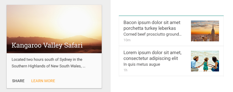 分析Material Design,会发现Google归纳了两类复杂内容信息的层级关系,分别是Card和Tile(List 以及其他相似定义属于同类的内容信息层级),其他定义多用于UI结构及细节。其中,Google定义Card是一种多功能信息的聚合入口,信息层级应较高,体现在Z轴应高于其他信息,视觉上有阴影表现并加以圆角处理。而tile(或同类信息列表)则是(同类或相关)信息的模块展现,信息层级应较低,体现在Z轴应略低于其他信息,视觉上应无阴影表现不加圆角处理。其结果是从视觉层面让产品对象更高效、更简单,同时也更具物理世界的“真实感”。