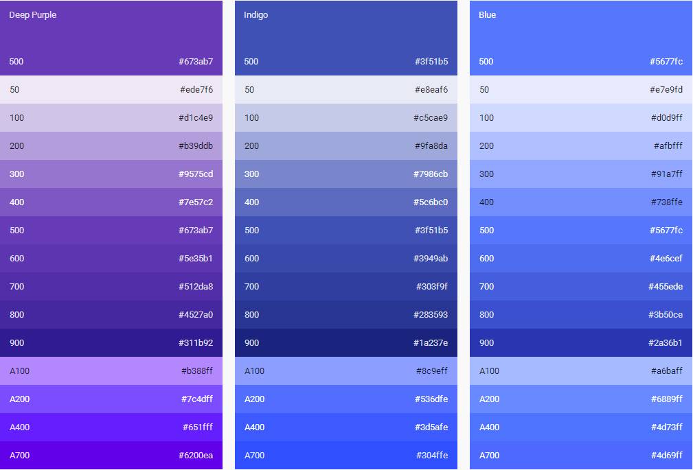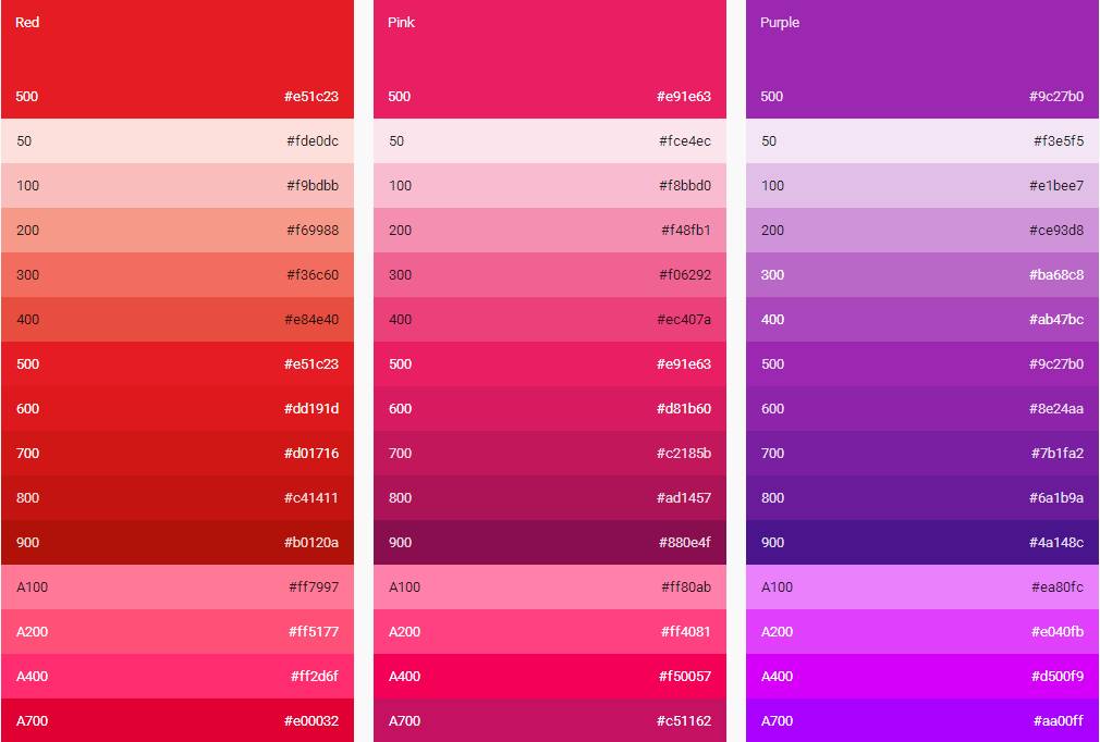 Material Design Guide中给出了若干明亮鲜艳的颜色,并且指定了颜色的主要展现和层级变化,可供设计师选择。