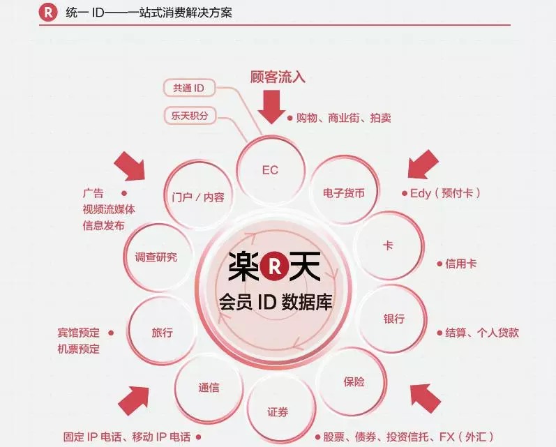 参考2014年Rakuten的Q1季度财报,乐天的电商增长率为31.7%。乐天平台65%的消费源自于移动端。在信用卡增长率方面却高达51.3%。纵使一个没有去过日本的朋友也知道日本的信贷业的发达,耳濡目染“一支唇膏可以按揭”的坊间传闻,其实不假。但真正值得背后深挖的东西确是Rakuten在日本进入后电商时代——移动电商时代,用户线上消费潜力挖掘殆尽后如何的生存和发展的真实经历。