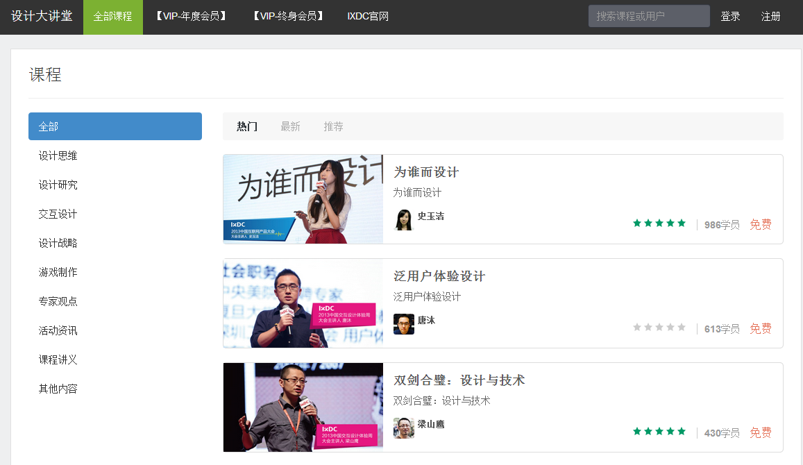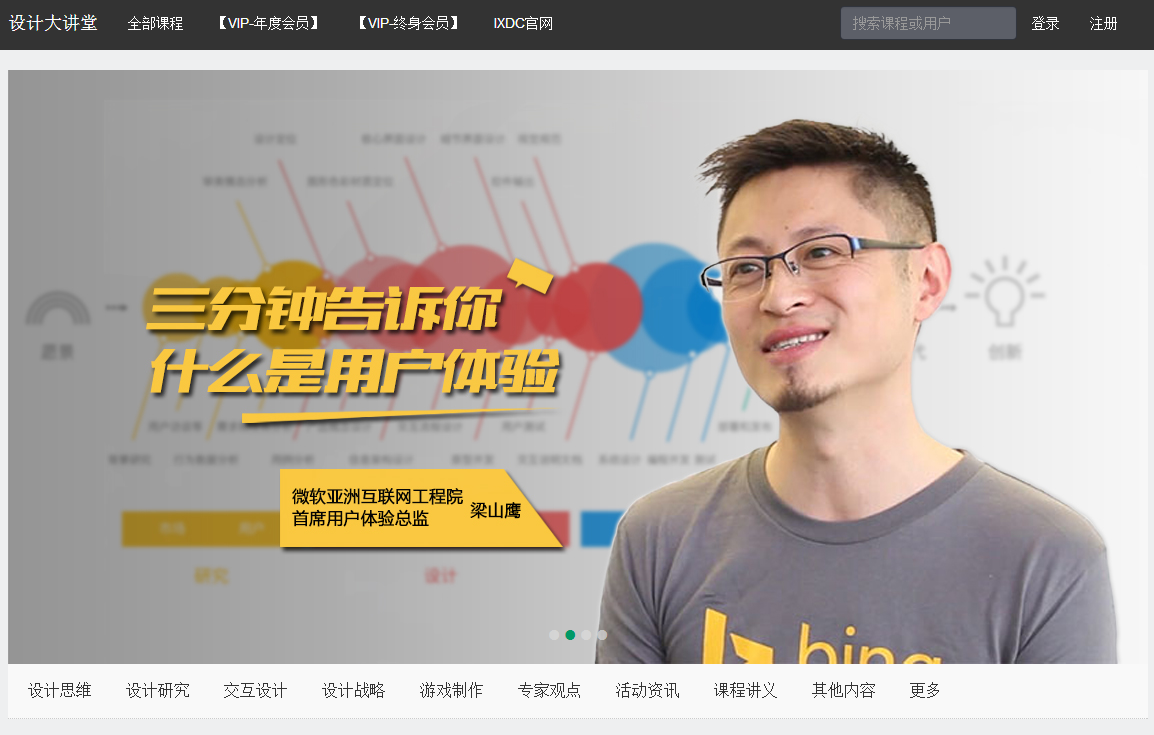 “设计大讲堂”是国际体验设计协会(IXDC)首次整合设计战略、产品设计、用户体验行业精华资源,搭建国际体验设计行业最具专业的权威在线自主学习平台。这里不仅汇聚了IXDC历年多场大会、采访及最具专业的权威的资源,同时也将汇聚各机构、协会与平台资源,整合最优秀的精华内容,为用户提供最有价值的服务内容!