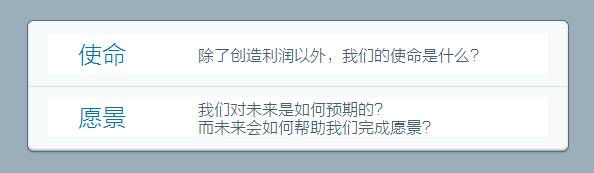 设计始于公司最顶层的使命,其次是公司的愿景。在一个没有清晰和可执行的使命与愿景的团队中,很难开展设计。不要低估这个问题的重要性,如果你所在的公司缺少清晰的使命,那就将缔造它作为你工作的一部分。