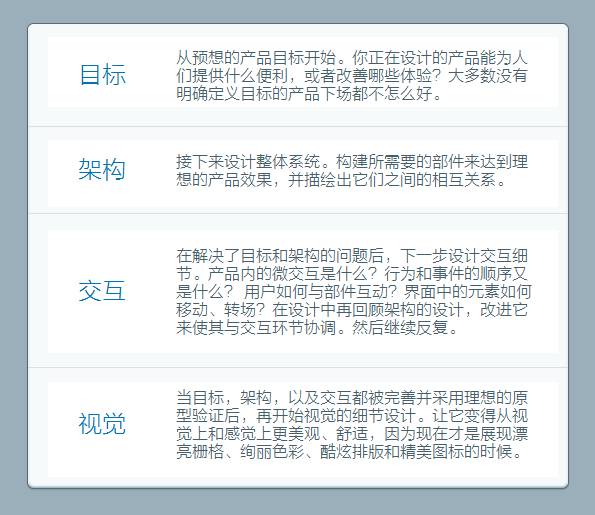 设计是一个多层面的过程。以我的经验而言,如何依次经过这几个层面来思考是有一个最佳顺序的。最简单的一种就是回想一下这四个层面: