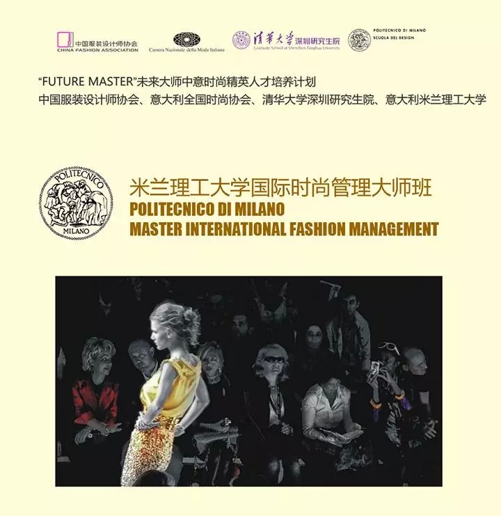 这个项目由中国服装设计师协会、意大利全国时尚协会、清华大学深圳研究生院和意大利米兰理工大学,四家权威机构召开两次签约仪式新闻发布会之后推出的中国顶尖的时尚领域专业管理人才培养项目,扎实的课程框架,四十余位国际领先的师资,米兰时装周组委会给与的大力支持,以及长达两年的培养,和国际认可的时尚管理master证书,都彰显了这个项目的深度和权威性。