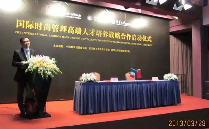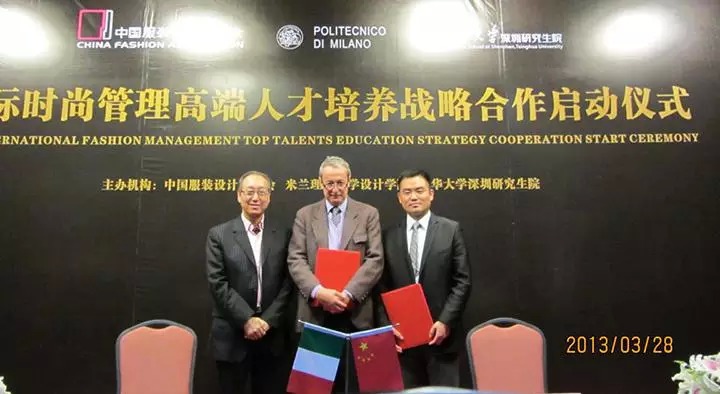 2013年3月28日,由中国服装设计师协会、米兰理工大学设计学院、清华大学深圳研究生院主办的“国际时尚管理高端人才培养战略合作签约仪式”在北京751D•PARK不拘讲堂举行,作为中国国际时装周的重要活动之一,本次签约仪式开启了由中国服装设计师协会、意大利米兰理工大学、清华大学深圳研究生院三家机构联合推出的国际时尚管理精英人才培养与交流计划的合作。